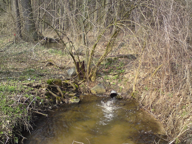 | Trubka jen zřídkakdy bývá součásti stavidla, ale tady je na počátku strouhy, co míří přes Štěnkov do spojené Orlice |